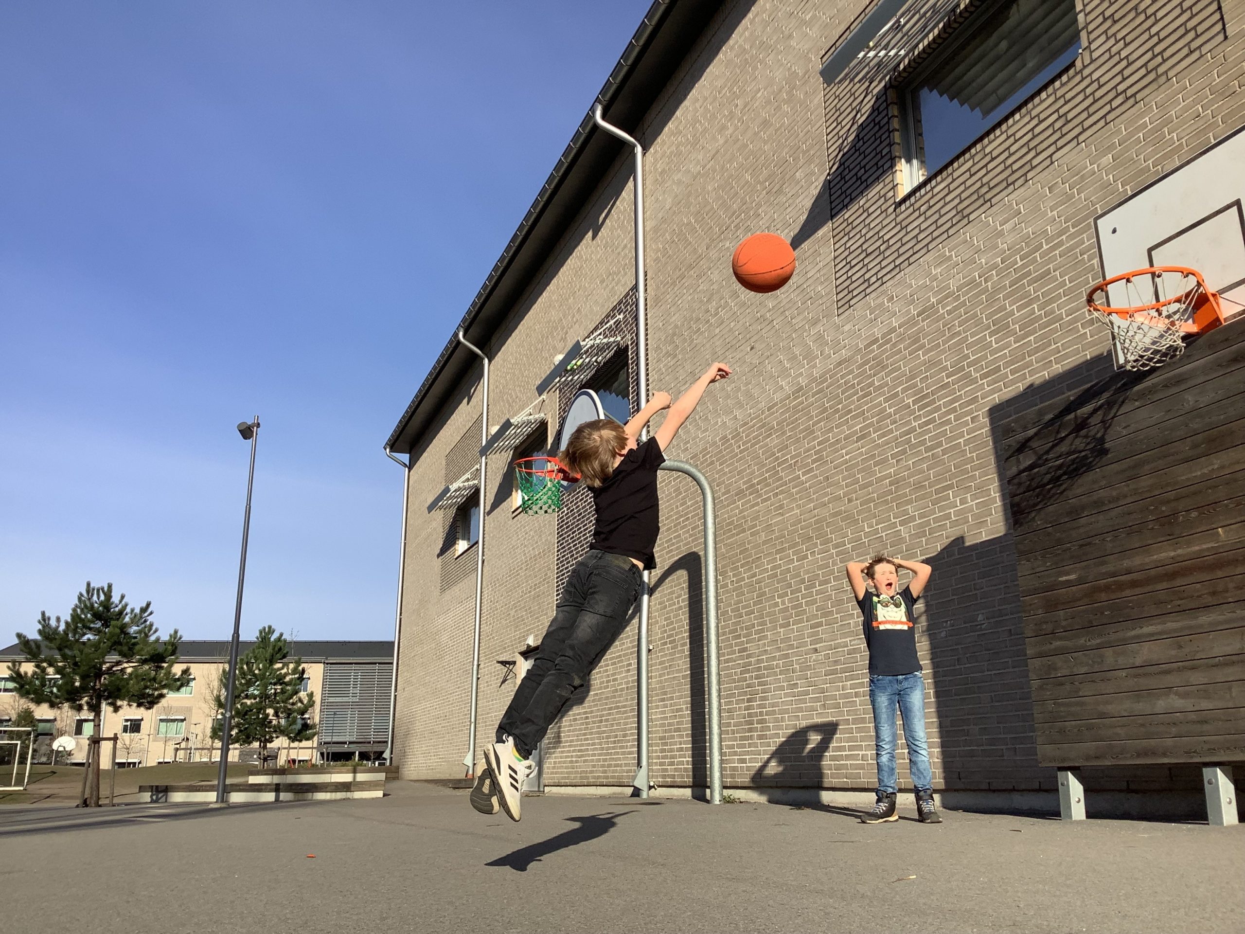 – Vi var på skolan och så tänkte vi. Vi skulle tävla till fototävlingen. Vi tänkte direkt på basket. Vi hämtade en basketboll av vår lärare och sedan började vi ta en massa foton. Till slut blev det den första bilden vi tog, säger Valter.