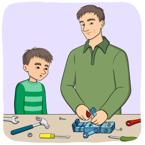 Pappa hjälper Mino.