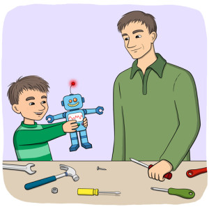 Nu fungerar roboten. Mino är glad igen!